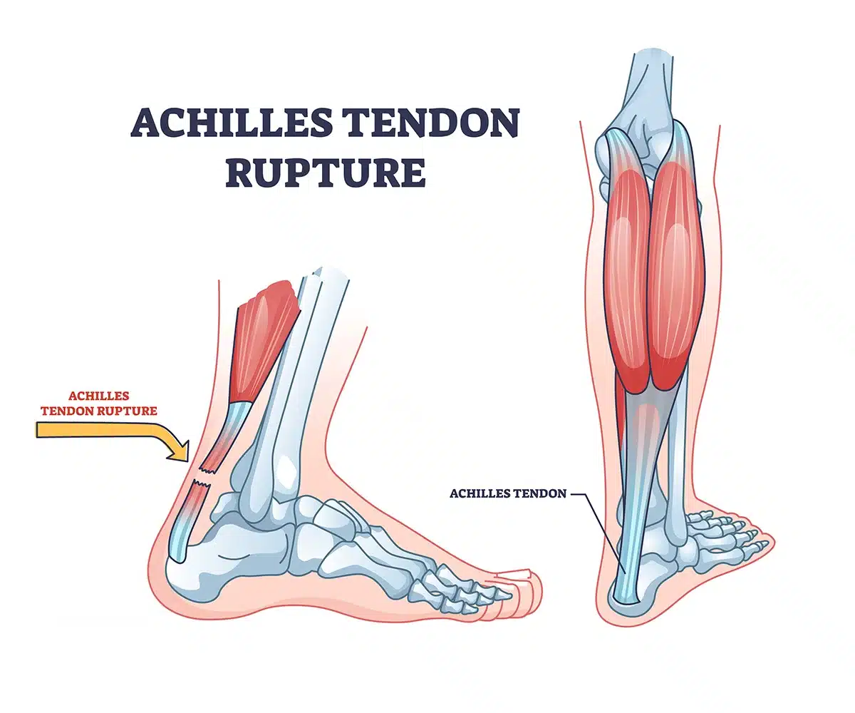 As you already know, your Achilles tendon goes from your calf muscle to heel bone. What you might not know is it’s the strongest and largest tendon in your body. It’s the whole reason your leg has the strength to walk, jump, and run. If you tear your Achilles tendon, then you have what’s known as an Achilles tendon rupture.