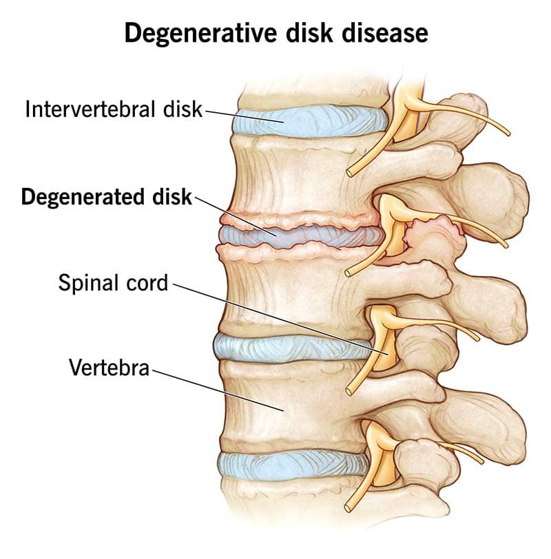 The first injury we’re going to look at is cervical degenerative disc disease, or DDD. When you have cervical DDD, it means the discs in your neck are wearing down. As you get older, those discs naturally lose water, flexibility, and height. It’s just part of aging.