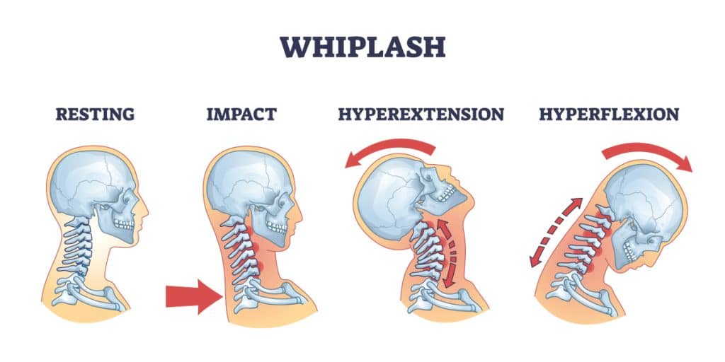Whiplash happens when your neck moves faster than your body can actually handle safely. Car accidents are a classic example, especially if you’re rear-ended. When you get hit from behind, your body gets pushed forward while your head is a second or 2 behind, creating a whip like motion.