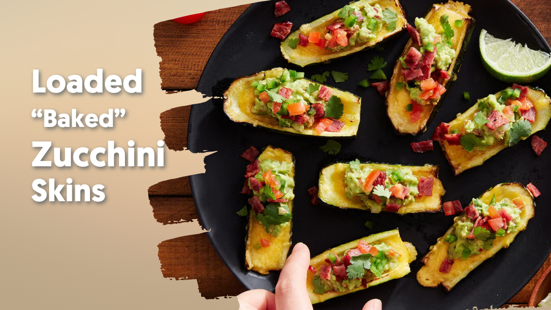 Think of these loaded zucchini skins as the fancy version of your favorite potato skins. They’re lighter, greener, and still totally satisfying. Don’t worry, they haven’t lost their indulgent side, though. In fact, it’s the complete opposite. They’re packed with melty cheddar, juicy tomatoes, creamy avocado, and crispy turkey bacon (if you’re using it).